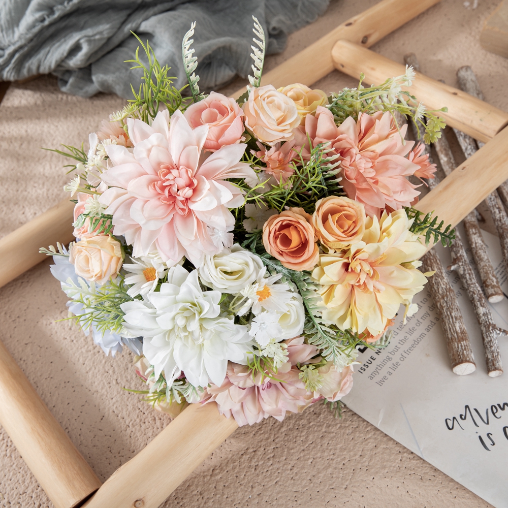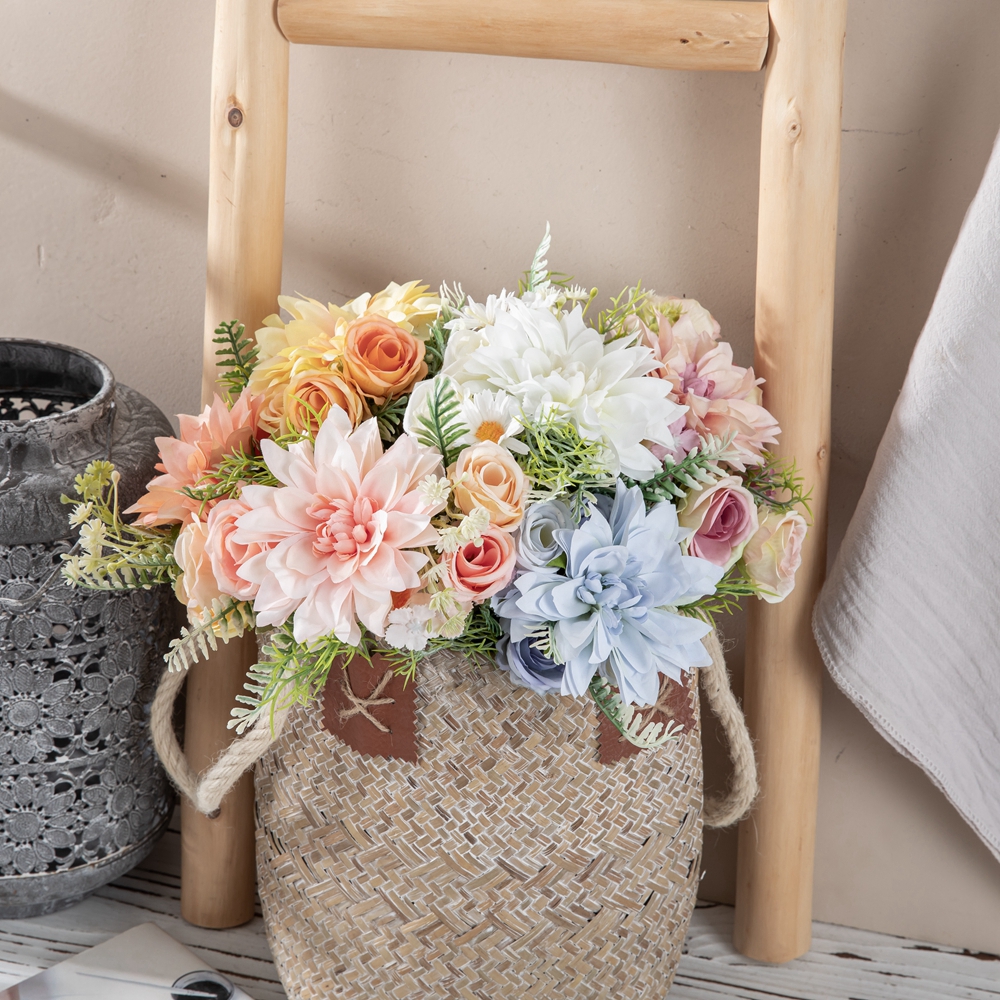Simulation beautiful Dahlia bouquet, using advanced simulation technology, from the texture of the petals to the details of the stamens, are striving to restore every detail of the real dahlia. Each petal has been carefully sculpted, not only feels soft and delicate, but also shows the three-dimensional sense and gloss of real flowers under the irradiation of light. Even the most critical eye can hardly tell the difference between it and the real flower.