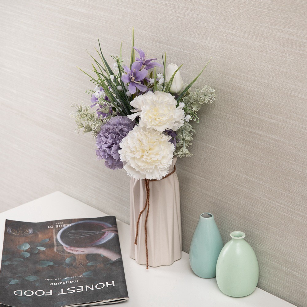 This bouquet consists of carnations, tulips, vanilla and other leaves. Carnations convey maternal love and gratitude. Its flower language is gratitude and care, simulation carnations placed in the home, let us always have a grateful heart, cherish the company of the family.