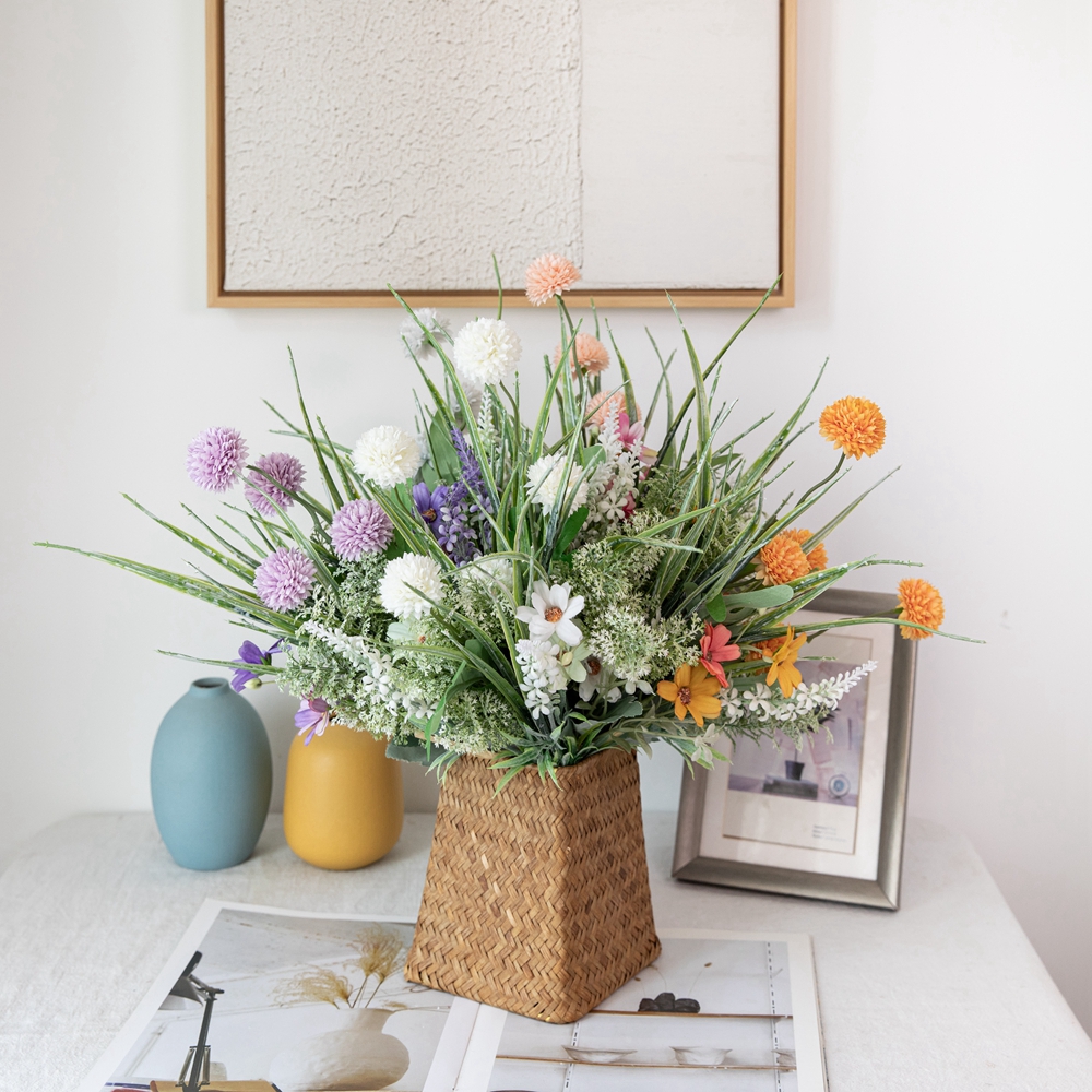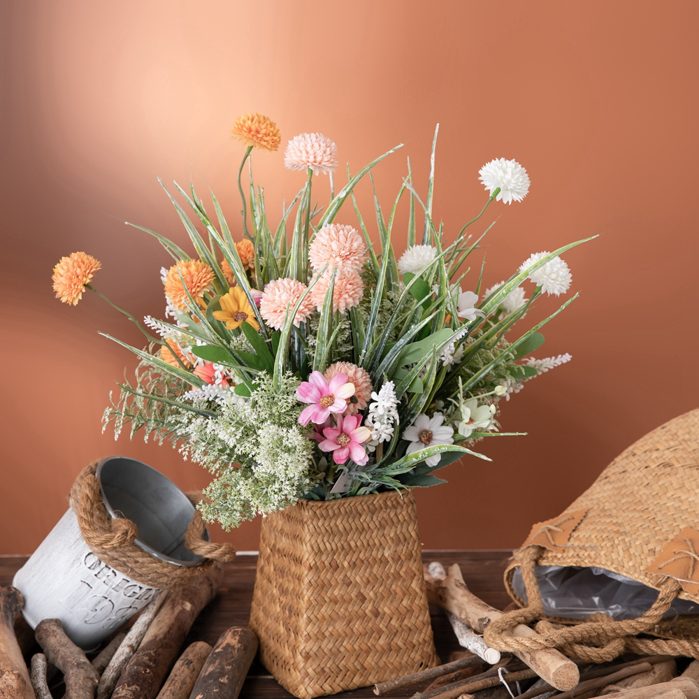 Artificial colorful dandelion vanilla bundle is a blend of heritage and innovation. This blend makes artificial flowers occupy a more and more important position in modern home decoration, and become one of the important choices for people to pursue a better life.