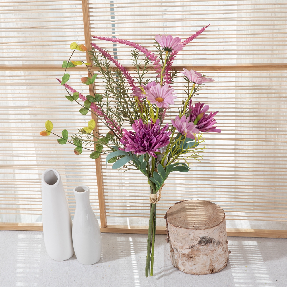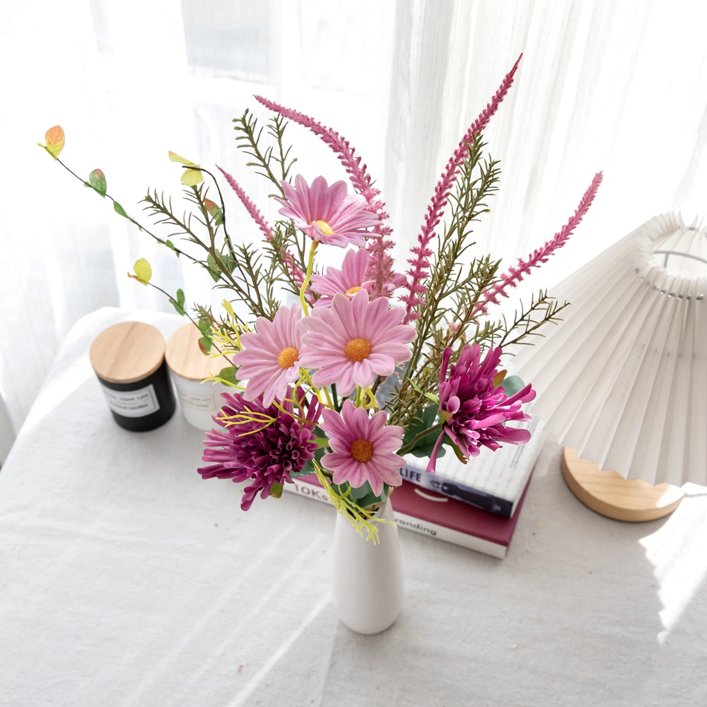 When you first see this imitation crab claw Daisy with grass bouquet, you will be attracted by its lifelike appearance. The fine process makes every flower seem to have a life, the publicity of crab claw chrysanthemum and the warmth of daisies against each other, coupled with the green grass, forming a harmonious natural picture. Placed in the home, whether it is a corner of the living room, or the desk in the study, can become a beautiful landscape.