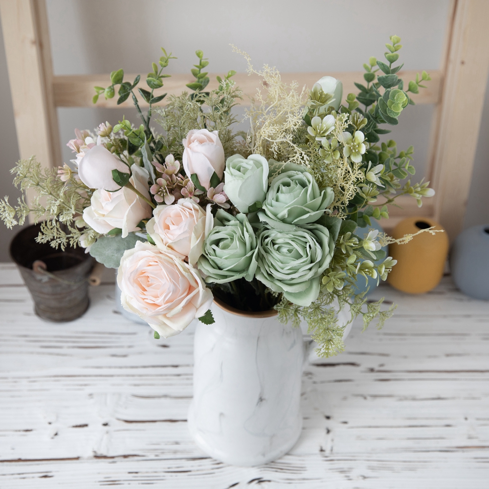 This rose Eucalyptus bouquet is made of high quality simulation materials. They have the same fine texture and bright colors as real flowers, but what is better is that they can remain beautiful and fresh for a long time without worrying about wilting and fading.