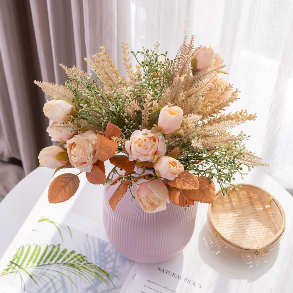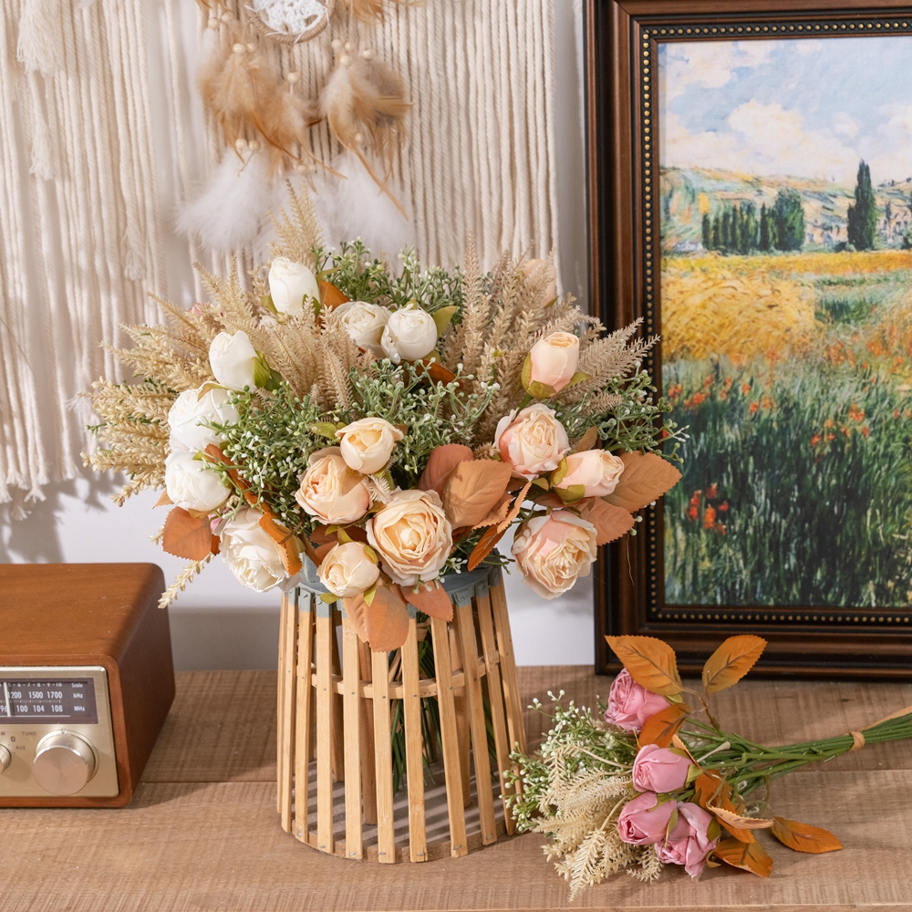 The simulated dry-roasted rose grain bouquet cleverly combines classical elements with a modern aesthetic. Drawing inspiration from classical culture, the designers cleverly match the softness of roses with the simplicity of grain ears to create a visual effect that is both retro and fashionable.