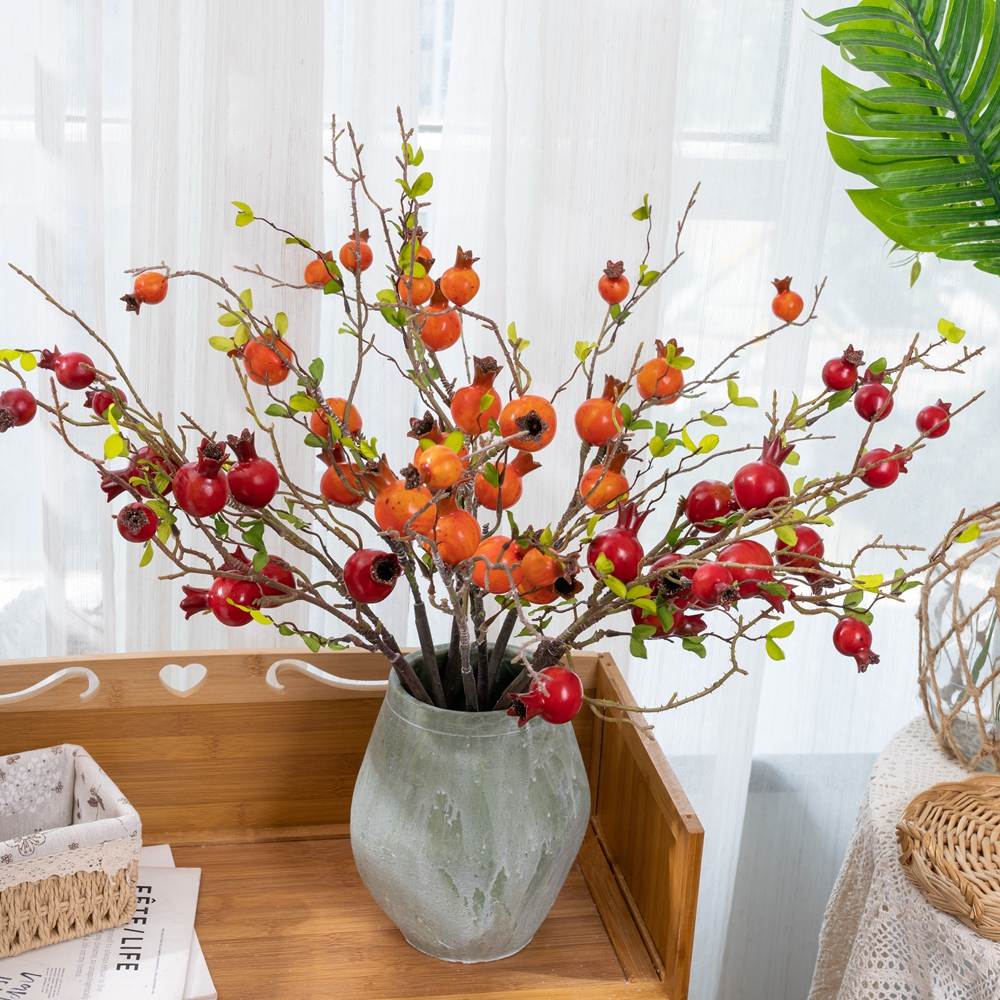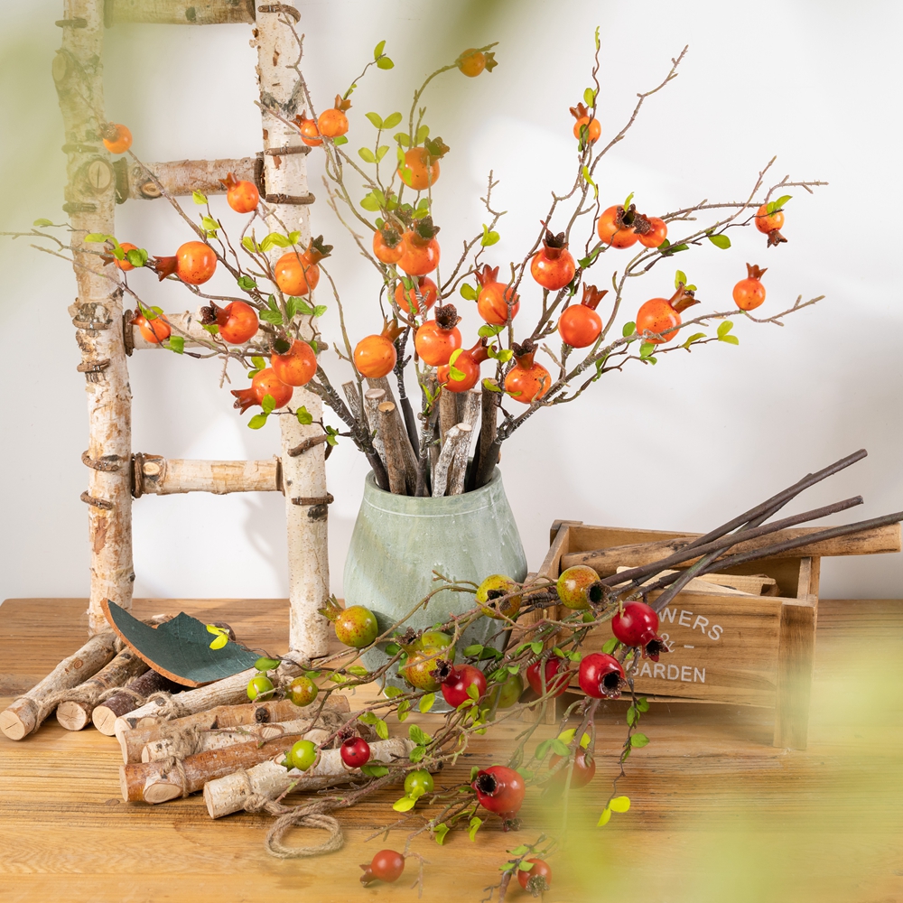 It can be used as an ornament to add a sense of hierarchy and three-dimensional space, whether it is a simple style of modern home, or a traditional residence in a retro style, the simulation of small pomegranate long branches can be perfectly integrated with it, showing different decorative effects.