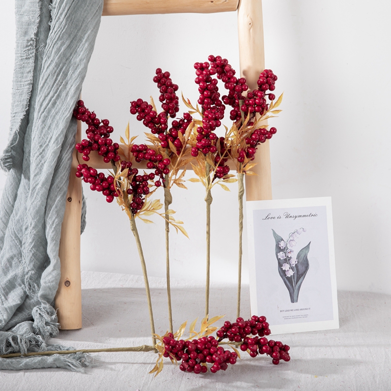 The foam single stem red berry beans are meticulously processed throughout the production process, from material selection to detailed polishing. The foam material undergoes special treatment, resulting in a fine and uniform texture that is resistant to deformation and damage. Whether placed alone or combined with other floral arrangements, they can seamlessly blend into the scene and become the finishing touch.