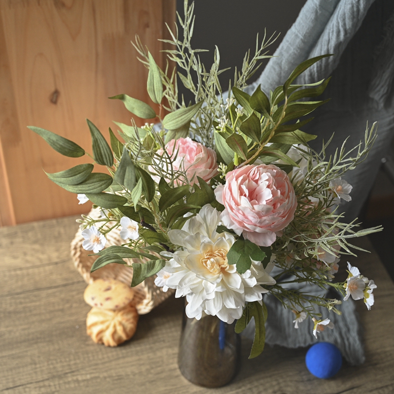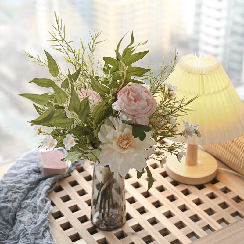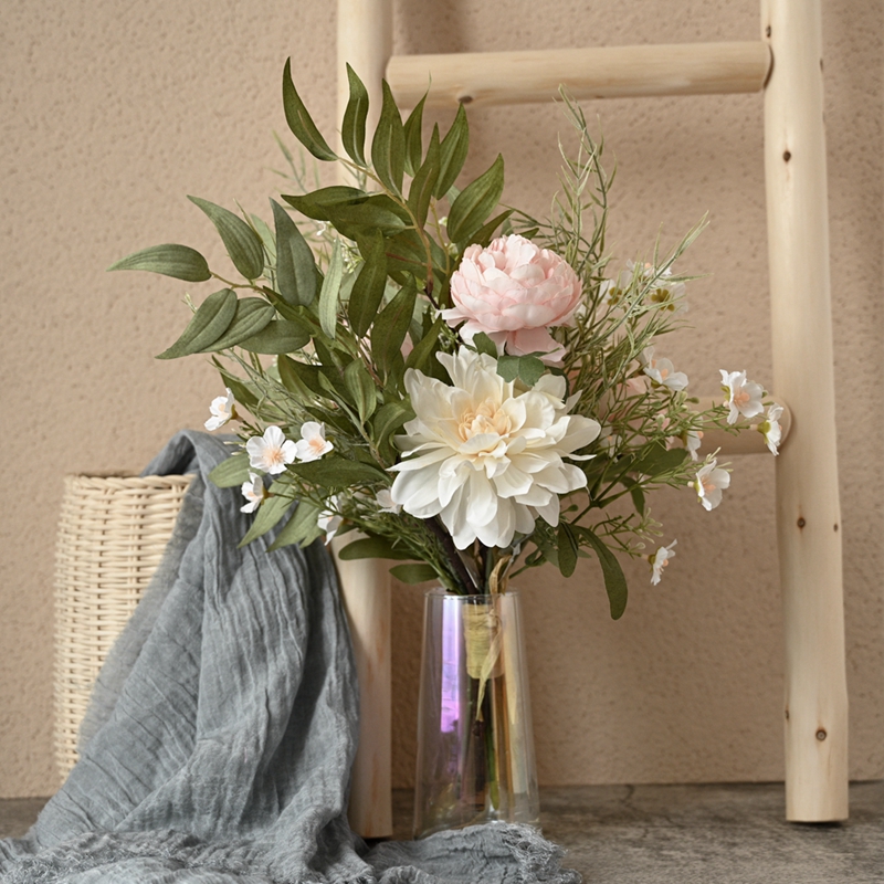 Flowers are a gift from nature and also a carrier of emotions. A carefully arranged bouquet of flowers not only adds beauty to life but also conveys the expectations and blessings hidden in the heart. Among various flower arrangements, the combination of peonies and dahlias is undoubtedly the best symbol of wealth and beauty.When paired with fresh and lively leaves and grass, it becomes the Peony and Dahlia with Leaf and Grass bouquet.