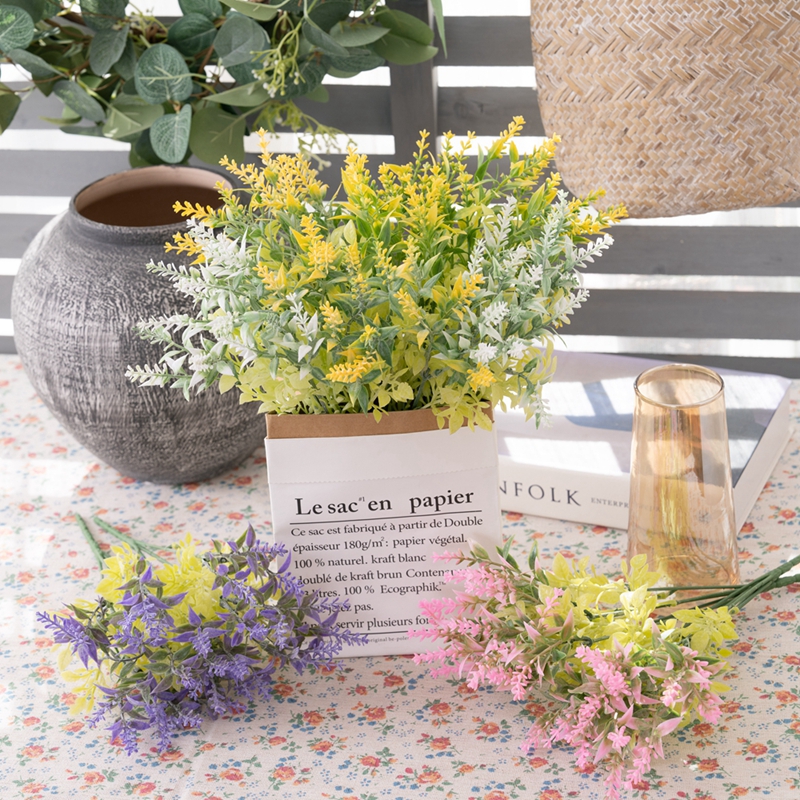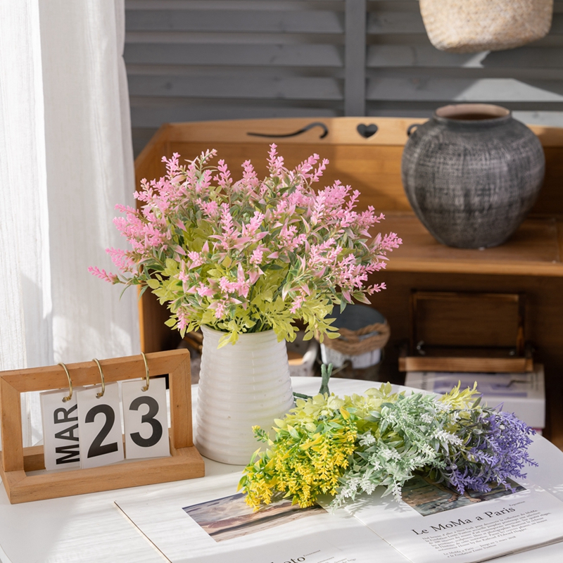 The designer based the design on the real lavender, accurately replicating every detail from the shape of the flower spikes to the gradual color change. The flower spikes are made of high quality eco friendly plastic material, processed through special sandblasting and shaping techniques. Each tiny flower needle is slender and soft, presenting a natural fluffy texture. Although it is made of plastic, it does not have the feeling of being stiff or rough. Instead, it has a delicate matte texture, which is very similar to the touch of the real lavender flower spikes.