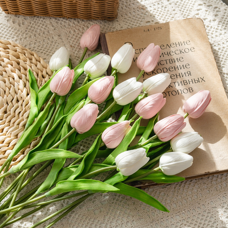 Each one is meticulously crafted based on the real tulip. The flower stems are tall and slender, with subtle natural curves, not overly artificial or stiff. It seems as if it has just been picked from the flower field. Made of high-quality PU material, it has a soft and delicate touch, like the petals of a real flower, smooth and elastic. It is definitely not comparable to the plastic texture of ordinary artificial flowers.