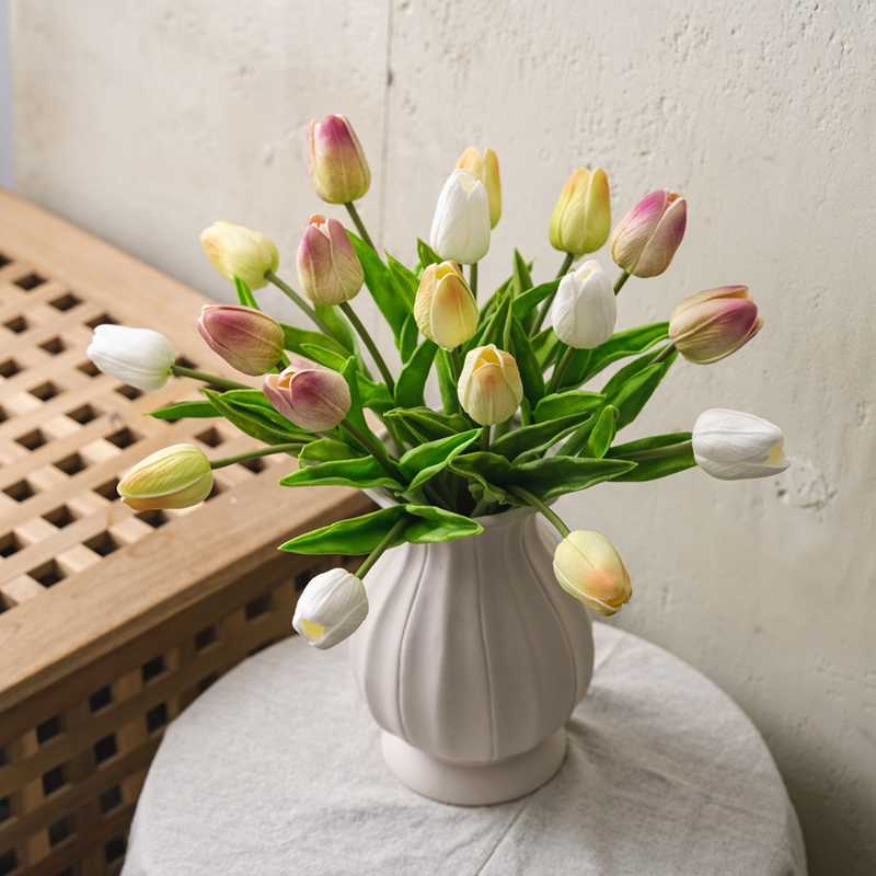No matter what style of space it is, it can be perfectly integrated with it. In a minimalist living room with a Nordic style, place a single-headed PU tulip branch in white or light pink, paired with a transparent glass vase. Without excessive decoration, it can highlight the cleanliness and elegance of the space, allowing the spring atmosphere to come right at you.We always long to preserve the beauty of nature, but are often constrained by time and energy. In a gentle and practical way, it satisfies our pursuit of nature and romance.