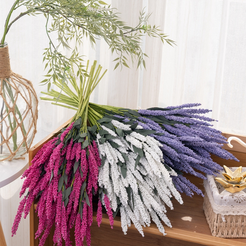 The charm of single stem lavender lies in its ability to fit into every corner of the home, using a single color to brighten different spaces and evoke different moods. On the coffee table in the living room, it can be paired with a beige cotton linen tablecloth and vintage ceramic tea cups. The single stem lavender is slanted and placed in a simple glass vase.