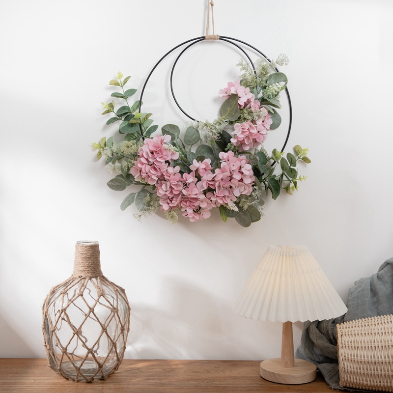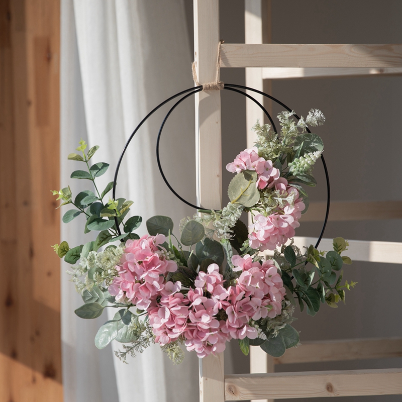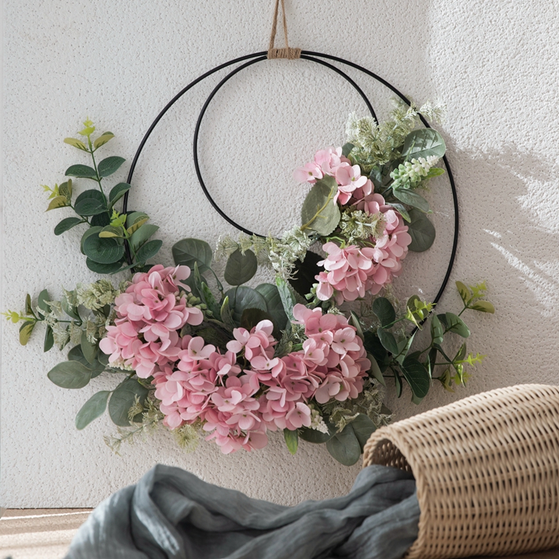 The pace of life is getting faster and faster. Many people love life and pursue a sense of home ritual, but they are troubled by the lack of time to handle the cumbersome home decoration. The hydrangea dolgoa leaf grass double ring wall hanging is precisely the ritualistic gadget tailor made for the lazy ones. Just by gently hanging it, you can easily have a poetic and gentle home ritual feeling, allowing ordinary days to also contain little beauty.