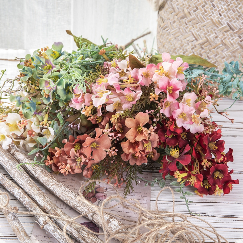 The exquisite craftsmanship has perfectly recreated the grace and delicacy of the smiling flower. The details of the stamens and pistils have also been meticulously crafted. The small stamens and pistils are scattered in a disorderly manner, accurately depicting the different postures of the smiling flower when it is about to bloom and when it is partially open. From a distance, it is almost impossible to tell whether it is a real or fake version of the smiling flower bouquet. It seems to have directly brought the smiling flower branches in spring into one’s home.