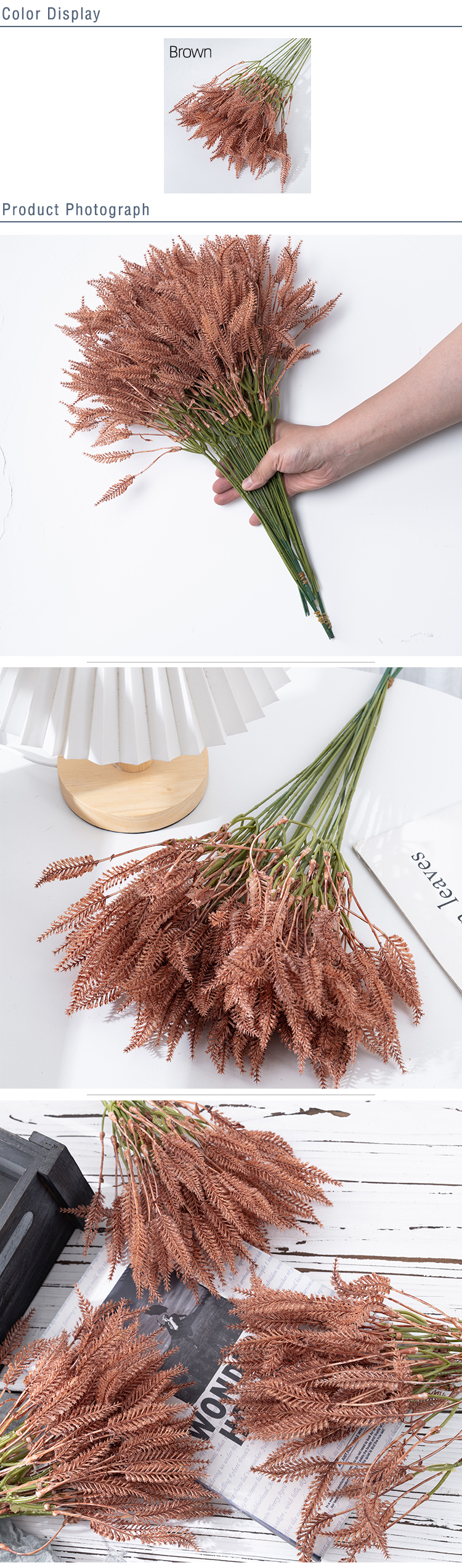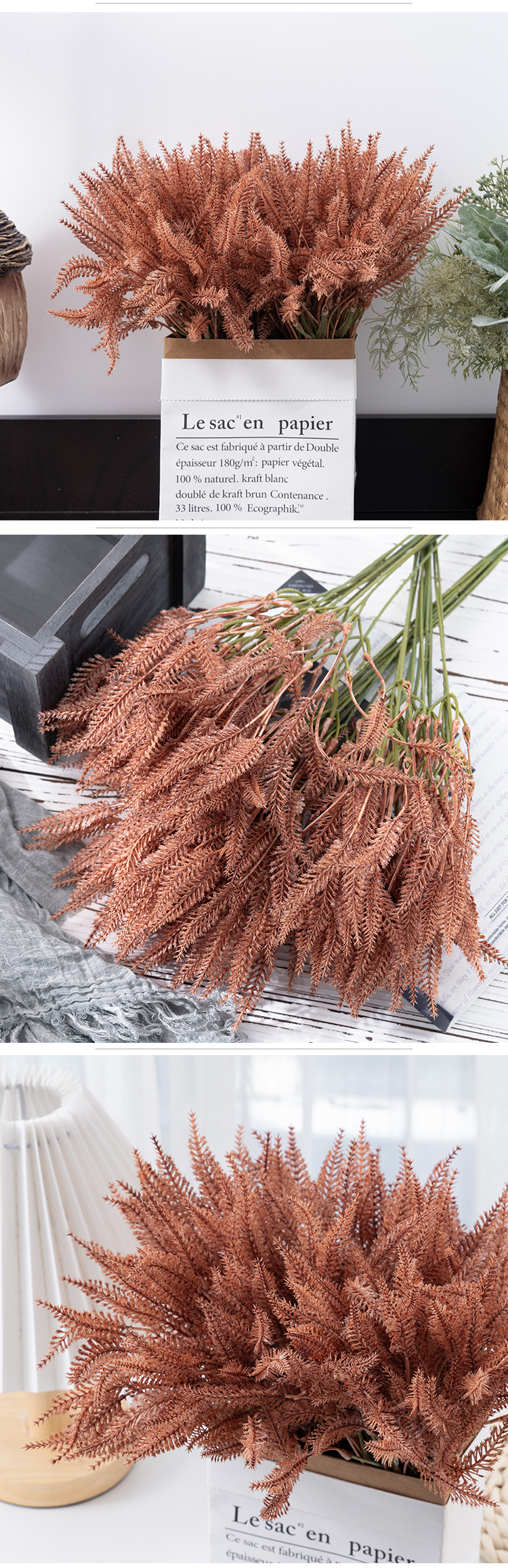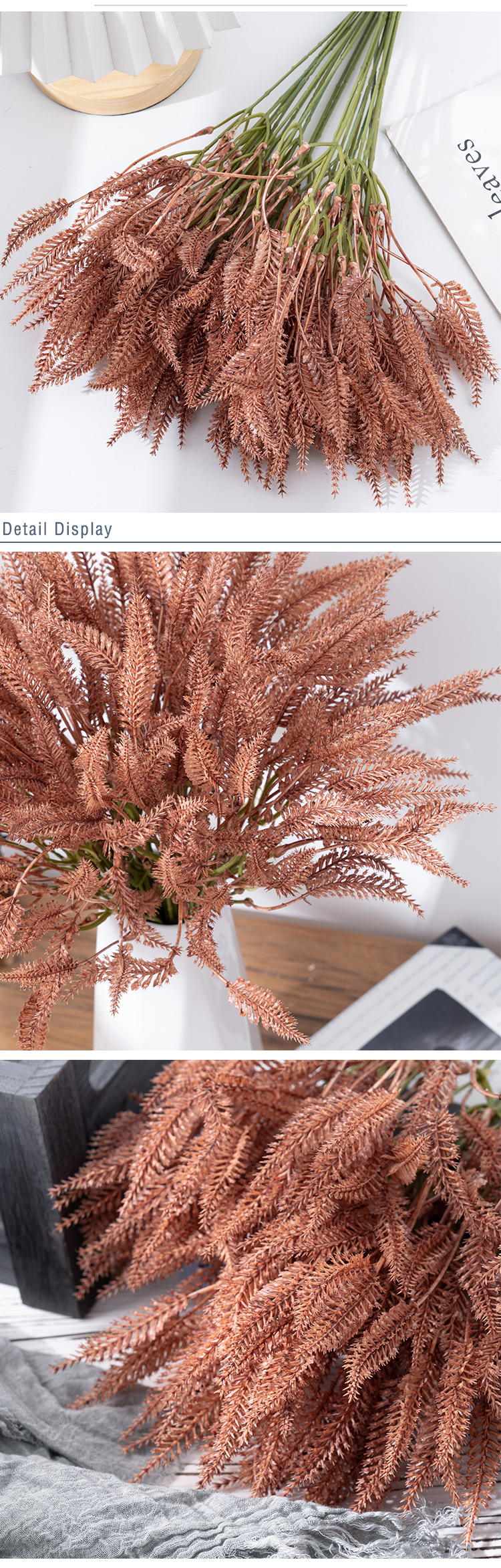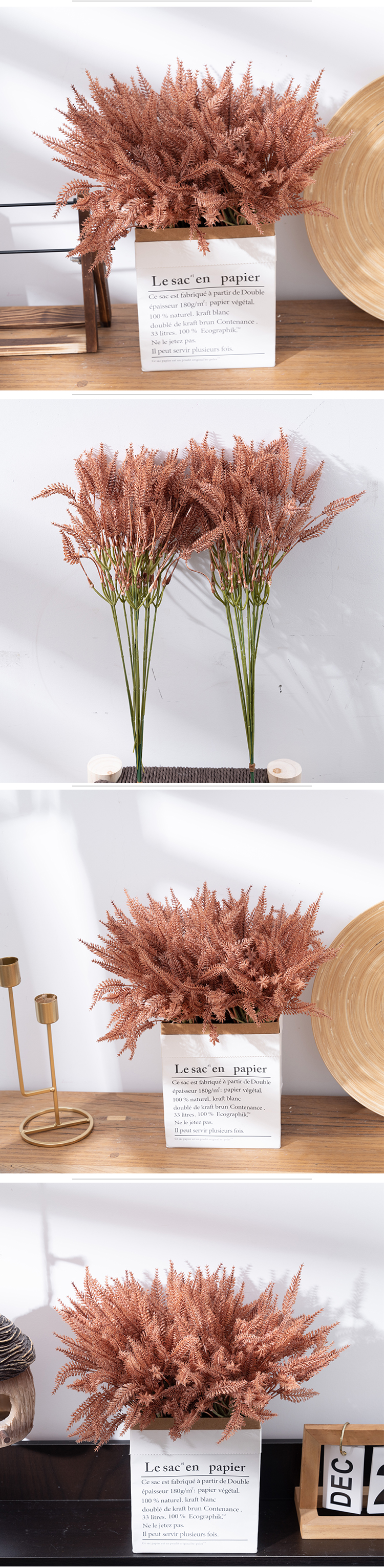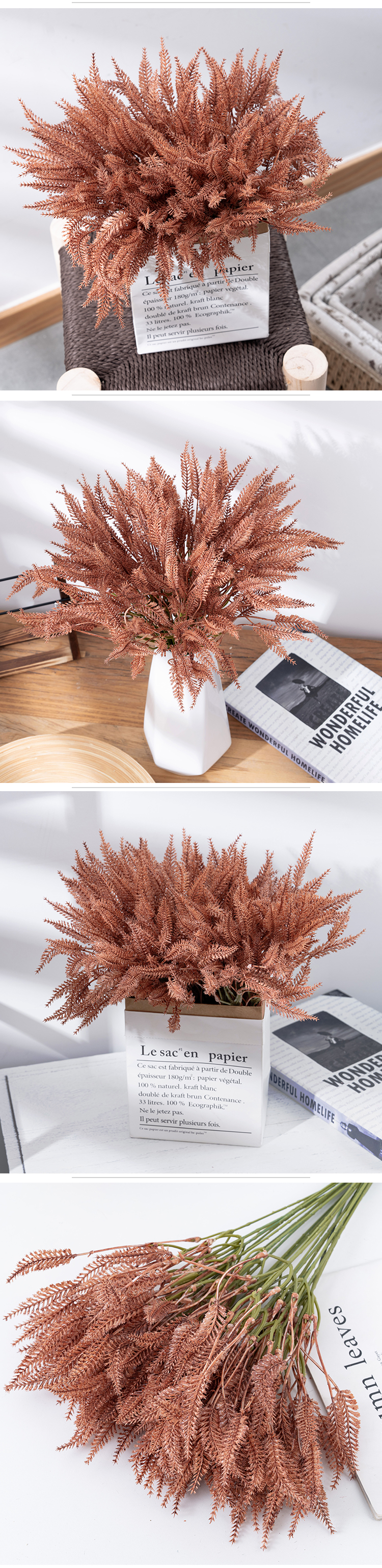 Met een totale hoogte van 47 cm en een bloemhoofdgedeelte van 20 cm, voegt dit charmante arrangement een vleugje gratie en verfijning toe aan elke kamer.Of het nu de slaapkamer, hotel, ziekenhuis, winkelcentrum of zelfs buiten is, de Setaria Sprigs Bunch past moeiteloos bij elke gelegenheid.Elke bos bestaat uit 12 stokken vossestaart, het delicate vakmanschap verweeft handgemaakte en machinale technieken, wat resulteert in een meesterwerk dat onmogelijk is te onderscheiden van zijn levende tegenhangers.Veilig verpakt in een binnendoos van 100*24*12 cm, met 36 bosjes per doos, komt uw bestelling in onberispelijke staat aan.