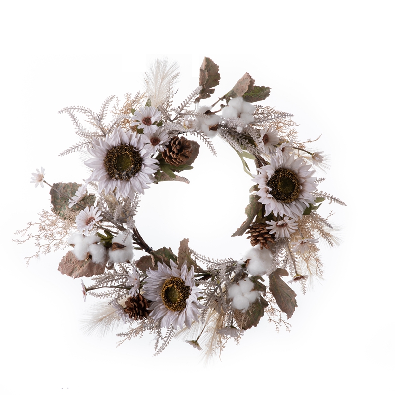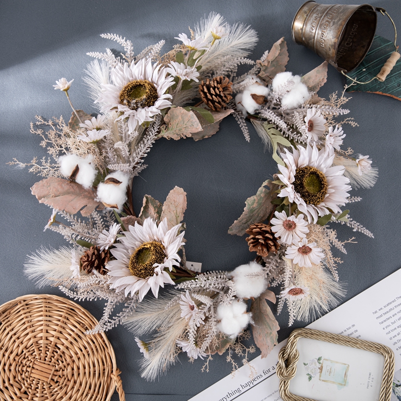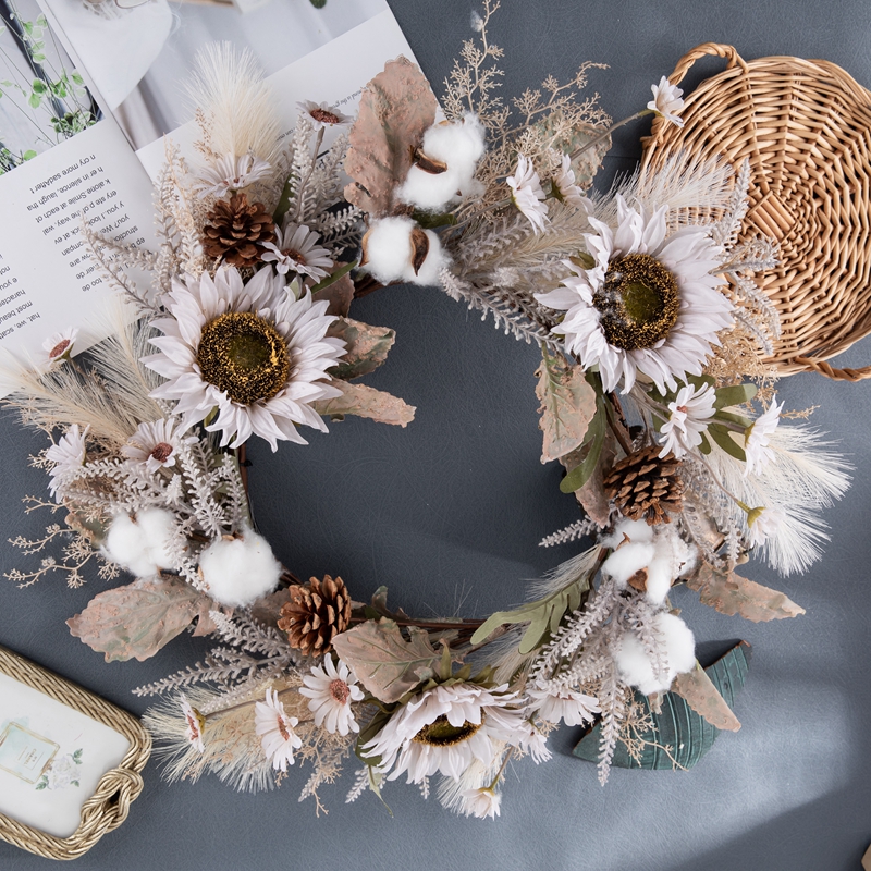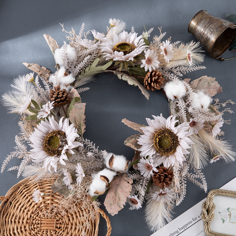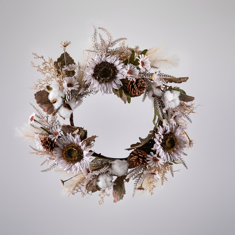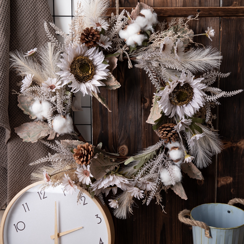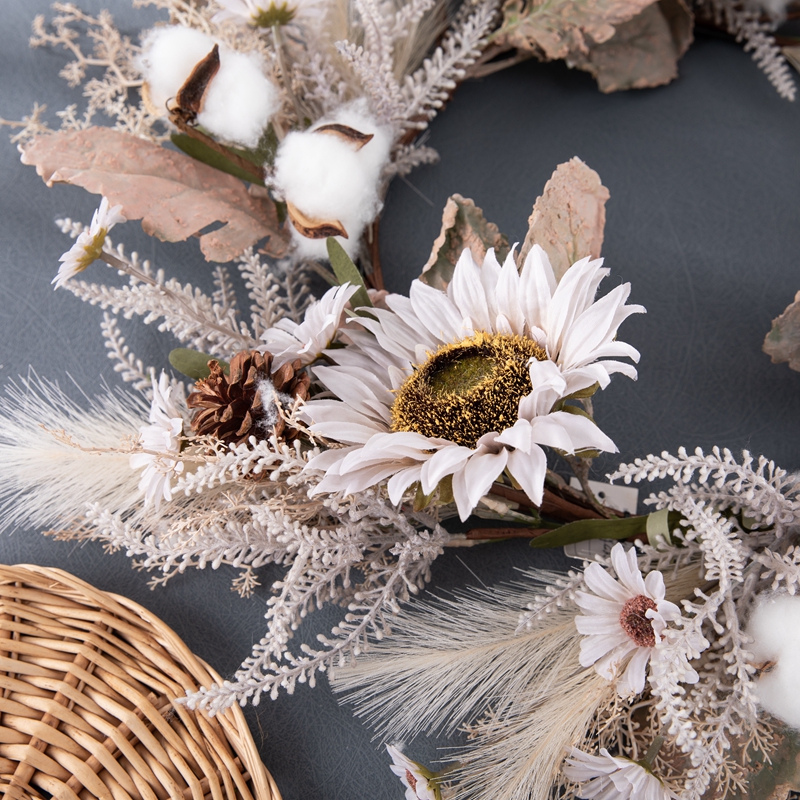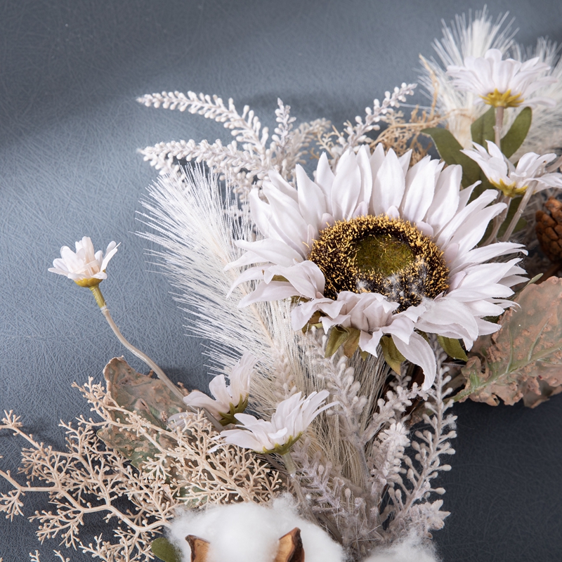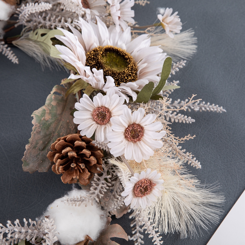 Versatilitatea inelului DY1-6120 Sunflower Fuzzy este de neegalat, făcându-l completarea perfectă pentru orice decor sau ocazie. Indiferent dacă împodobește intrarea într-o casă confortabilă, îmbunătățește atmosfera unui hol luxos al hotelului sau dă o notă de eleganță unui loc de nuntă, această coroană se îmbină perfect în împrejurimile sale, ridicând estetica generală. Farmecul său natural îl face, de asemenea, o alegere ideală pentru expoziții, săli, supermarketuri și chiar spații în aer liber, unde poate rezista la elemente, continuând să emane frumusețea sa atemporală.
