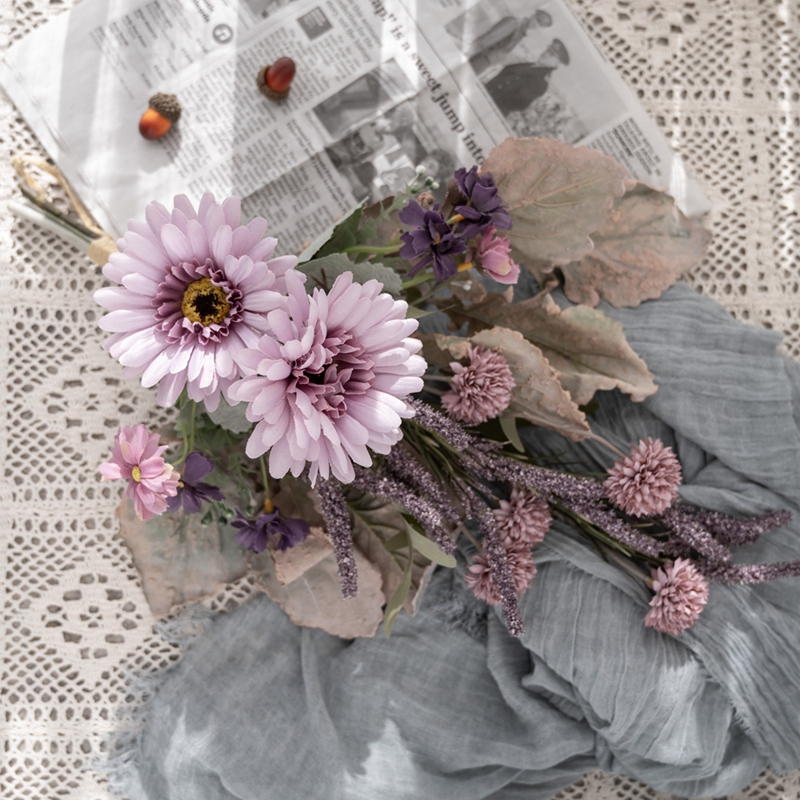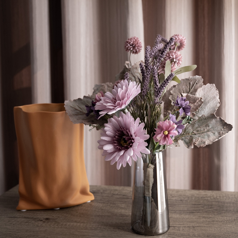 Kur kjo buqetë me lule vendoset aty, ajo nuk shërben më thjesht si një dekorim i zakonshëm; përkundrazi, bëhet një dritare e vogël përmes së cilës mund të ndihet gjithmonë prania e pranverës. Vetëm duke parë këtë buqetë, mund të kujtohet ngrohtësia e diellit, prekja e butë e flladit dhe të gjitha pamjet e bukura të pranverës.