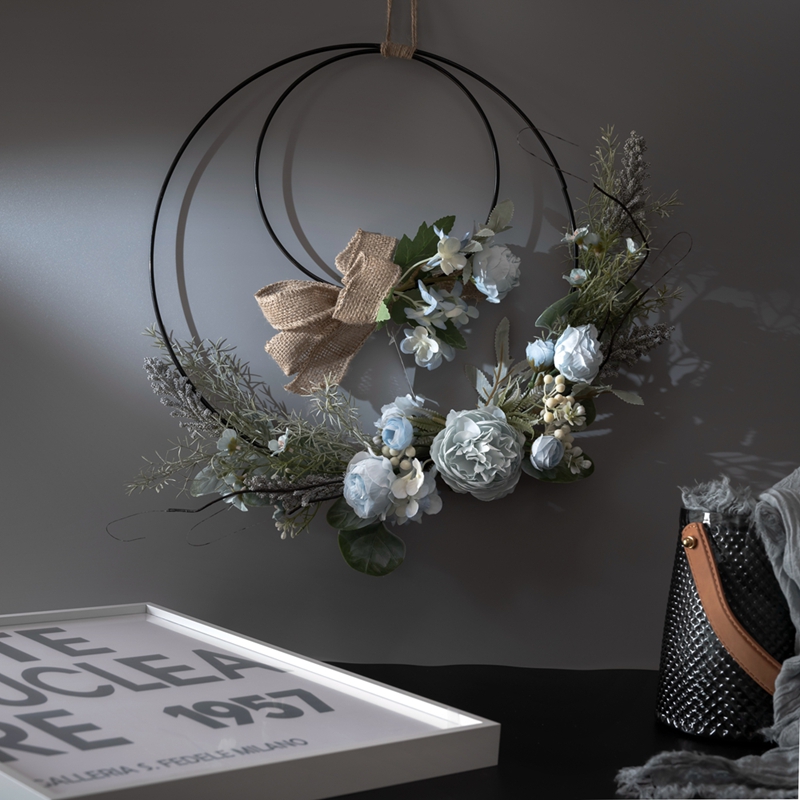 Këto materiale lulesh janë të rregulluara me kujdes rreth unazës së dyfishtë, me disa gjethe të buta, degë të holla ose bar të thatë të shpërndarë këtu e atje. Kjo jo vetëm që ruan integritetin e strukturës, por gjithashtu paraqet një gjendje natyrale sikur rritet me erën. Çdo lule dhe çdo gjethe duket sikur tregon një histori që i përket natyrës. Pa fjalë, mund të prekë drejtpërdrejt zemrën.
