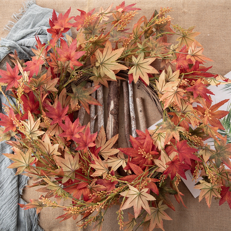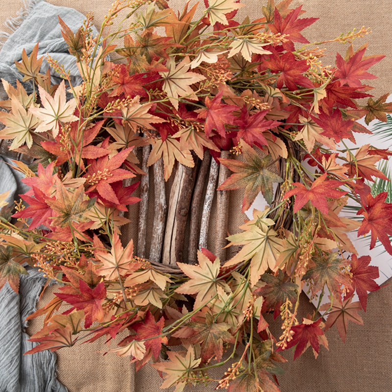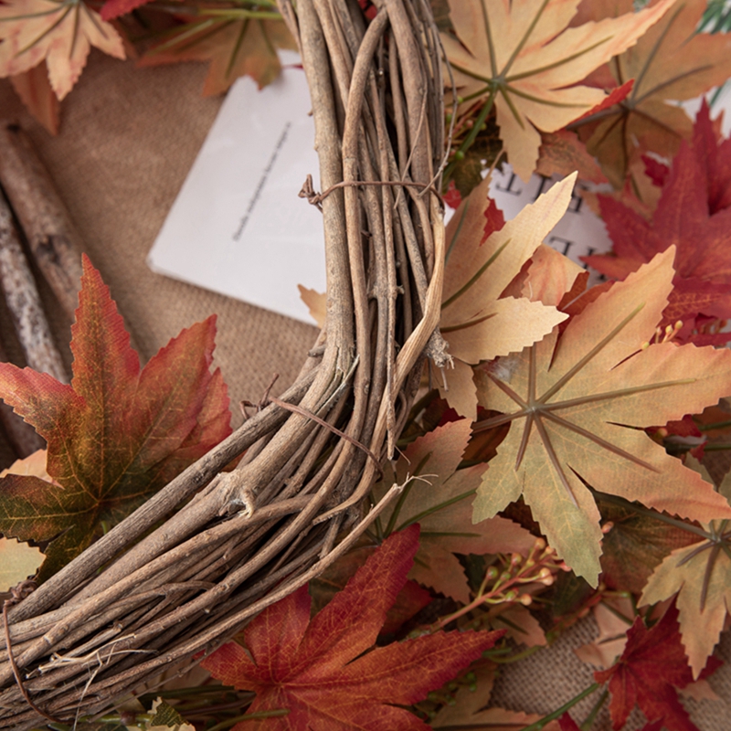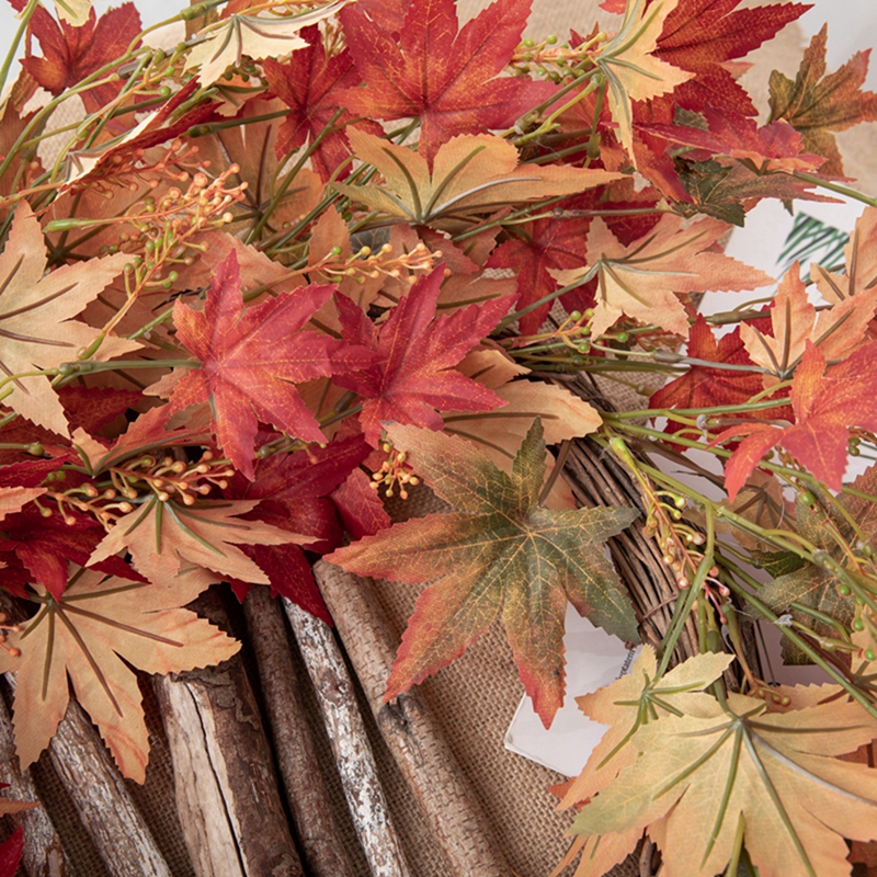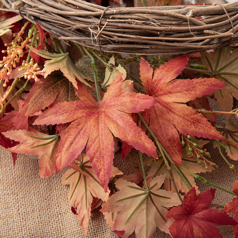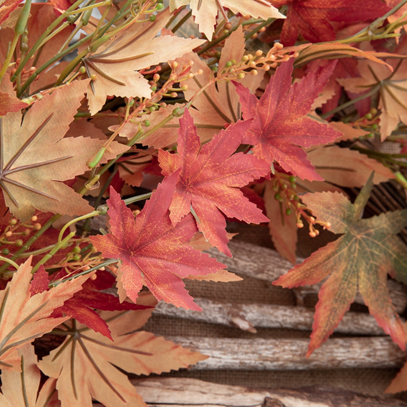 மேலும், மாலையின் பன்முகத்தன்மை ஆண்டு முழுவதும் எண்ணற்ற கொண்டாட்டங்களுக்கு நீட்டிக்கப்படுகிறது. காதலர் தினத்தின் காதல் சூழ்நிலையிலிருந்து கிறிஸ்துமஸ் மற்றும் புத்தாண்டு ஈவ் பண்டிகை உற்சாகம் வரை, DY1-5644A மேப்பிள் லீவ்ஸ் ரீத் ஒவ்வொரு சந்தர்ப்பத்திலும் பருவகால மாயாஜாலத்தை சேர்க்கிறது. இது திருமணங்களுக்குச் சரியான கூடுதலாகும், விழாவிற்கு இயற்கையான நேர்த்தியைக் கொண்டுவருகிறது, அல்லது நன்றி தெரிவிக்கும் விருந்துக்கு ஒரு மையமாக, நன்றியுணர்வு மற்றும் ஒற்றுமை உணர்வுகளைத் தூண்டுகிறது.