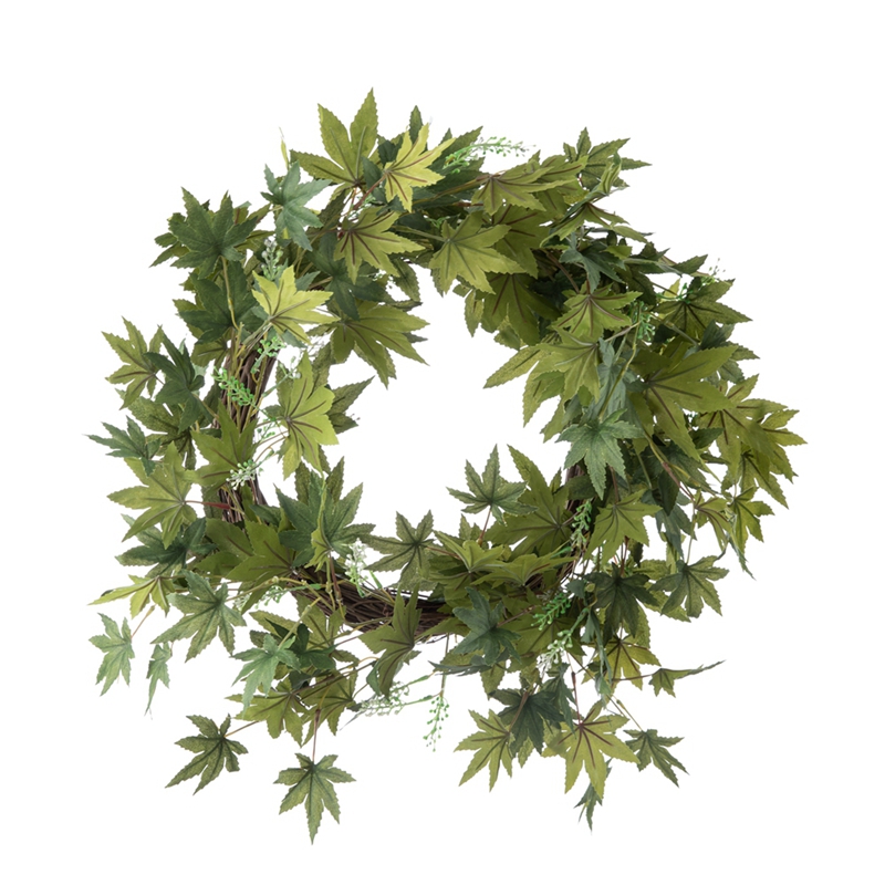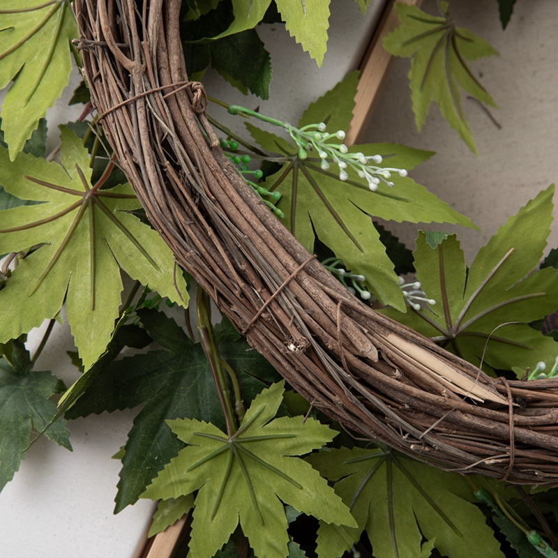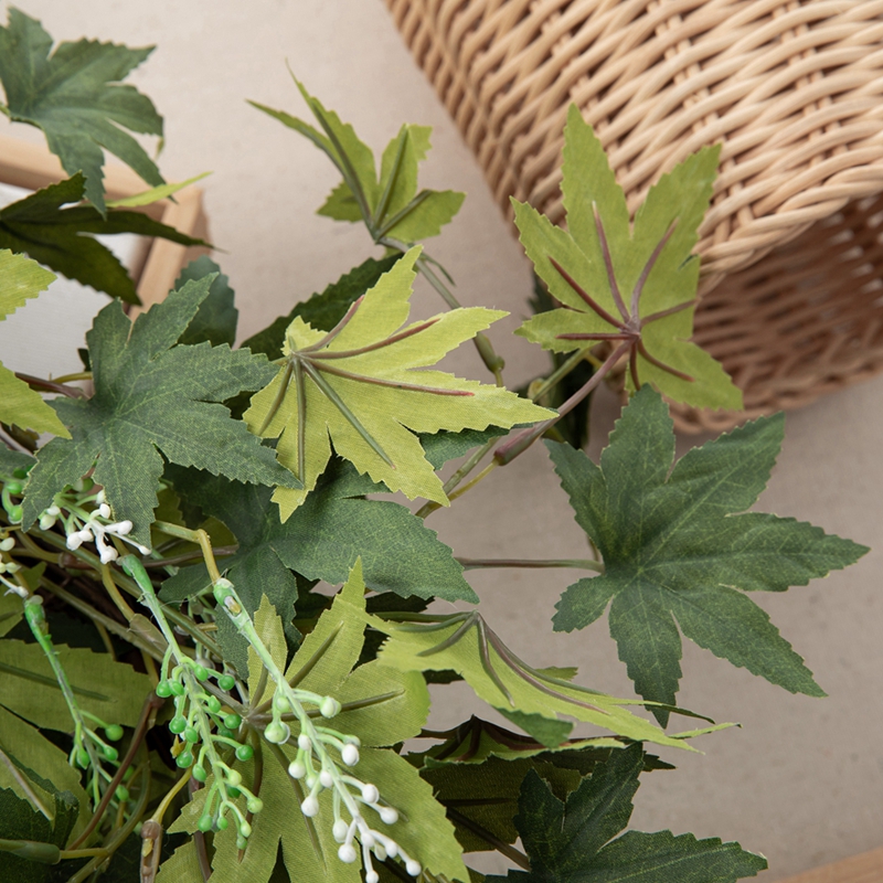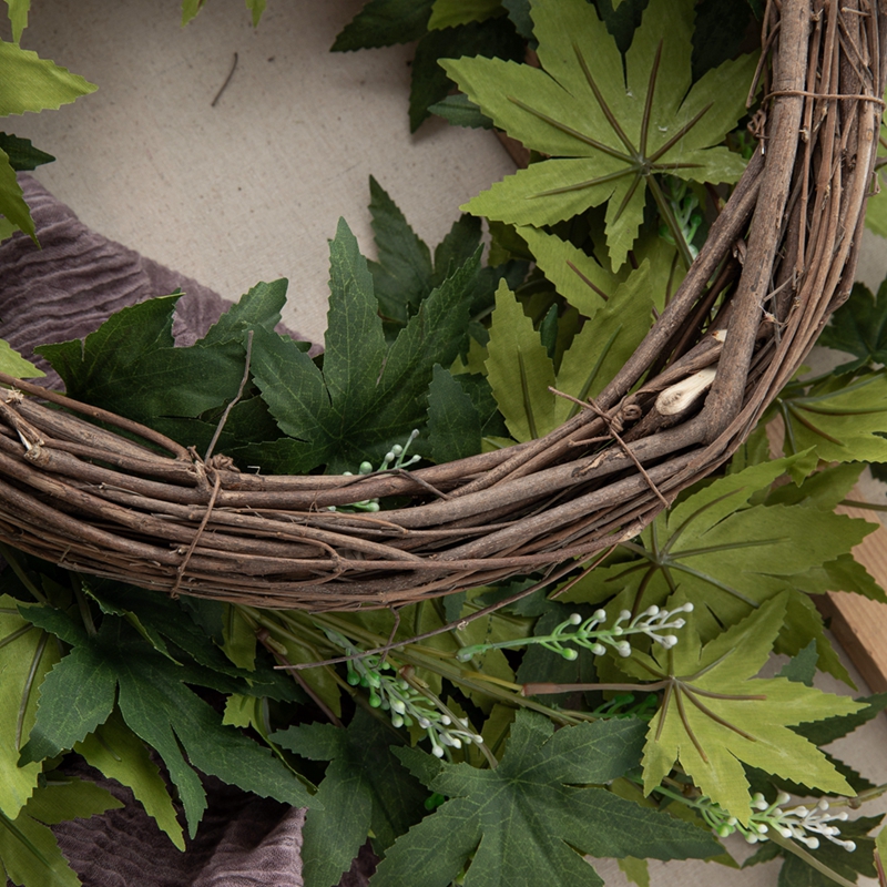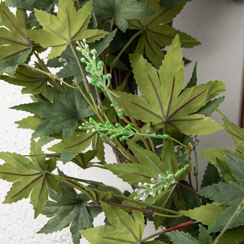 கையால் செய்யப்பட்ட மற்றும் இயந்திர உதவி நுட்பங்களின் கலவையானது, மாலையின் ஒவ்வொரு அம்சமும் மிகவும் துல்லியமாகவும் கவனமாகவும் வடிவமைக்கப்படுவதை உறுதி செய்கிறது. இலைகள் தனித்தனியாக வடிவமைத்து வர்ணம் பூசப்பட்டு, அவற்றின் நிஜ வாழ்க்கை சகாக்களின் இயற்கை அழகைப் பிரதிபலிக்கின்றன, அதே சமயம் கிளைகள் மற்றும் கிளைகள் திறமையாக ஒன்றாக பிணைக்கப்பட்டு உறுதியான மற்றும் நேர்த்தியான அமைப்பை உருவாக்குகின்றன. இதன் விளைவாக, நேரத்தின் சோதனை மற்றும் பல்வேறு அமைப்புகளின் பல்வேறு கோரிக்கைகளைத் தாங்கும் திறன் கொண்ட, பார்வைக்கு பிரமிக்க வைக்கும் மற்றும் கட்டமைப்பு ரீதியாக ஒரு மாலை உள்ளது.