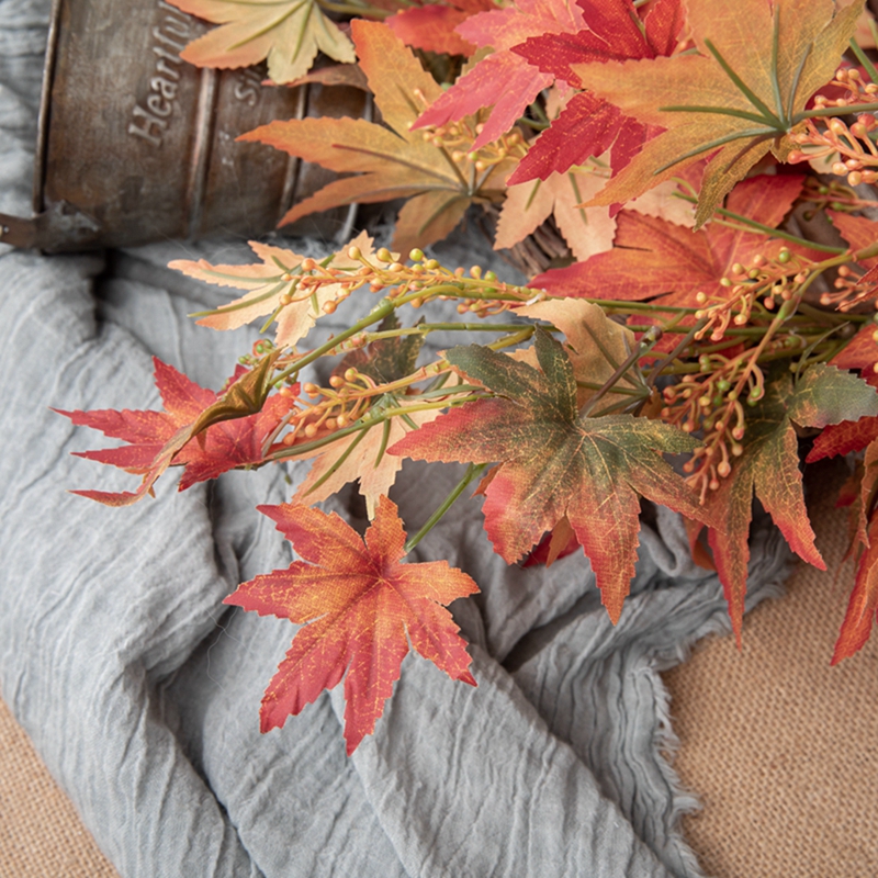 பன்முகத்தன்மை என்பது DY1-5644A மேப்பிள் லீவ்ஸ் மாலையின் தனிச்சிறப்பாகும், ஏனெனில் இது பல்வேறு சந்தர்ப்பங்கள் மற்றும் சூழல்களில் தடையின்றி கலக்கிறது. உங்கள் வீட்டின் வாழ்க்கை அறை அல்லது படுக்கையறையின் நெருக்கம் முதல் ஹோட்டல் லாபி அல்லது கண்காட்சி அரங்கின் பிரம்மாண்டம் வரை, இந்த மாலை எந்த இடத்திற்கும் இலையுதிர்கால அழகை சேர்க்கிறது. இது ஒரு மருத்துவமனை காத்திருப்பு அறையில் சமமாக வீட்டில் உள்ளது, தேவைப்படுபவர்களுக்கு ஆறுதல் மற்றும் அரவணைப்பு உணர்வைக் கொண்டுவருகிறது, அல்லது ஒரு பல்பொருள் அங்காடி இடைகழியில், வாடிக்கையாளர்களை பருவத்தின் மகிழ்ச்சியை அனுபவிக்க அழைக்கிறது.