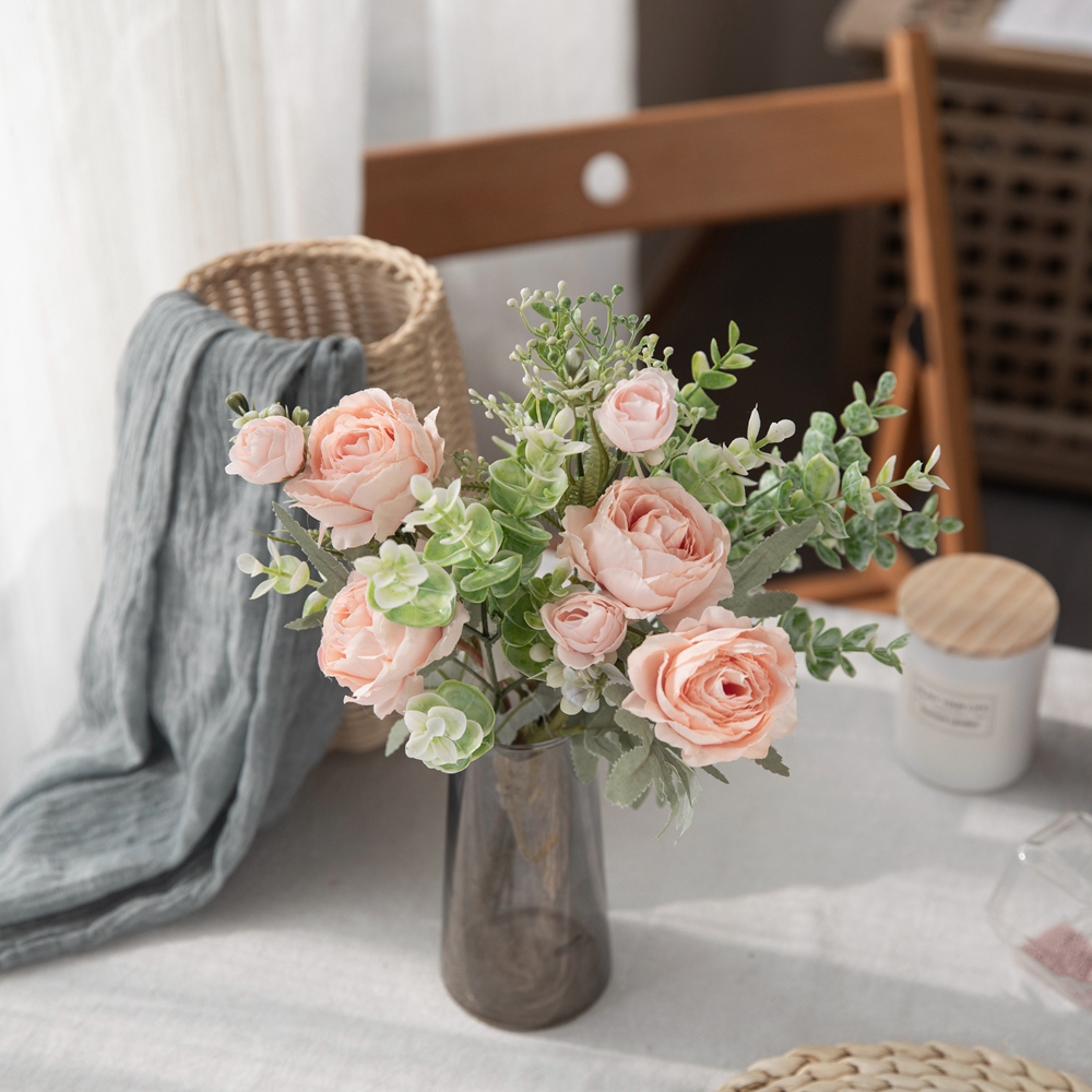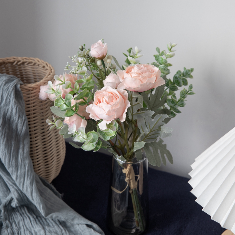 కృత్రిమ గులాబీ యూకలిప్టస్ హ్యాండిబండిల్, ఇది ఒక ఆభరణం మాత్రమే కాదు, మెరుగైన జీవితం కోసం ఆకాంక్ష మరియు అన్వేషణ కూడా, మీ జీవన ప్రదేశానికి వెచ్చని మరియు ప్రత్యేకమైన వాతావరణాన్ని జోడించగలదు.