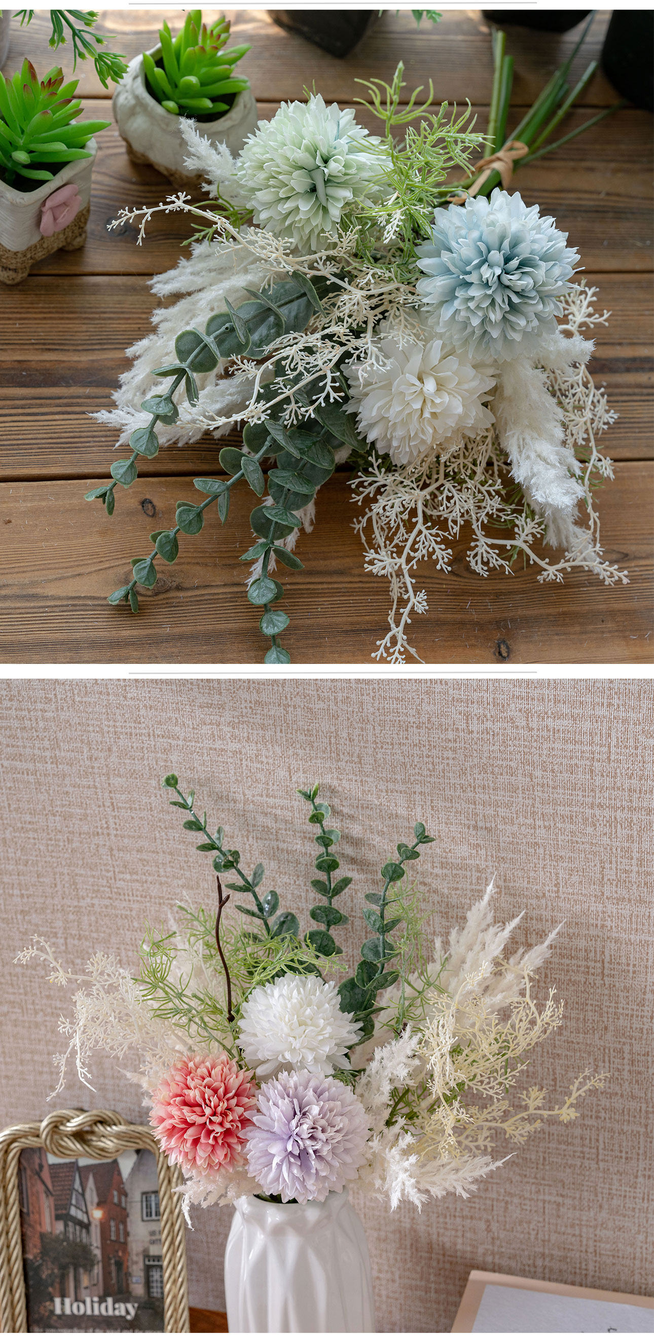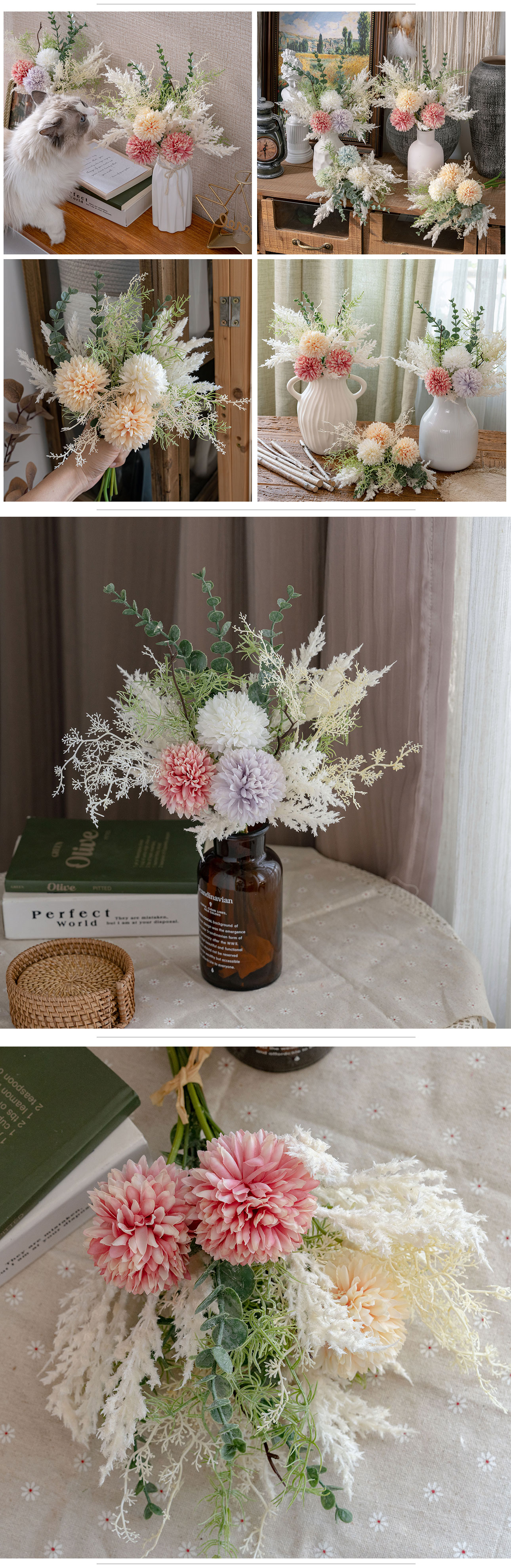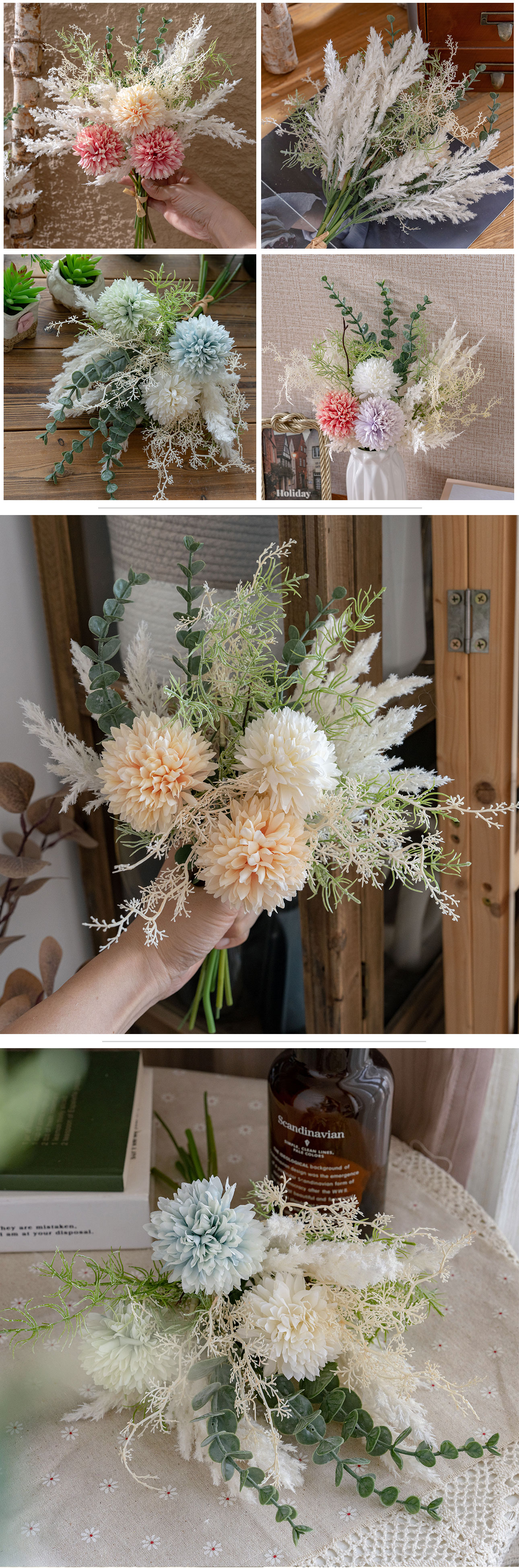 YC1002 Handmeade Astilbe Eucalyptus Artificial Pompom Bouquet Flower for Wedding Decoration Decorative Flowers & Wreaths CALLA Flower