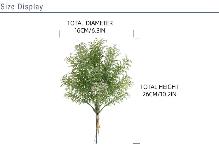 The specification of this product is worth noting. The price is for one bunch, and each bunch consists of 6 single stems. This means that when you purchase one bunch, you get 6 individual stems, which can be used together as a bunch or separated to add a touch of greenery to multiple places. This flexibility in use is a great advantage, allowing for more creative freedom in decoration. Whether you want a more clustered look or a scattered, subtle presence, these 6 stems can cater to your needs.