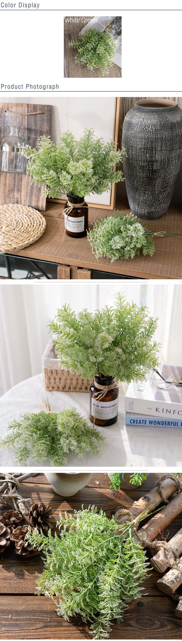 In terms of size, the overall height of the YC1077-1 Artemisia Bunch is 26cm. This is a very practical height, not too tall to be overwhelming, nor too short to go unnoticed. It strikes a perfect balance, making it suitable for placement in a wide variety of spaces, from small tabletop displays to larger floral arrangements. The weight of the bunch is 40.2g, which is lightweight. This lightness adds to its versatility, as it can be easily moved around and placed in different locations without much effort, and it also doesn’t put too much pressure on any surface it is placed on.