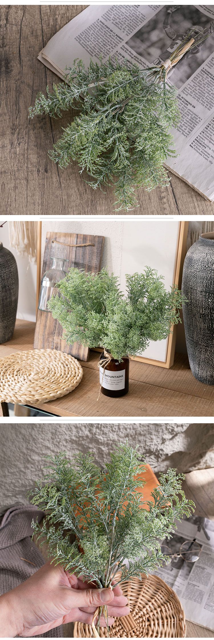The price specified is for one bundle, and each bundle consists of 6 sets of herbs. This generous composition allows for a rich and abundant display, whether used as a standalone decoration or combined with other items. The production of this herb bundle involves both handmade and machine techniques. The handmade part ensures that each set of herbs has careful attention to detail, giving it a unique and authentic feel, while the machine work ensures that the quality is consistent across all bundles, so you can expect the same level of excellence every time.