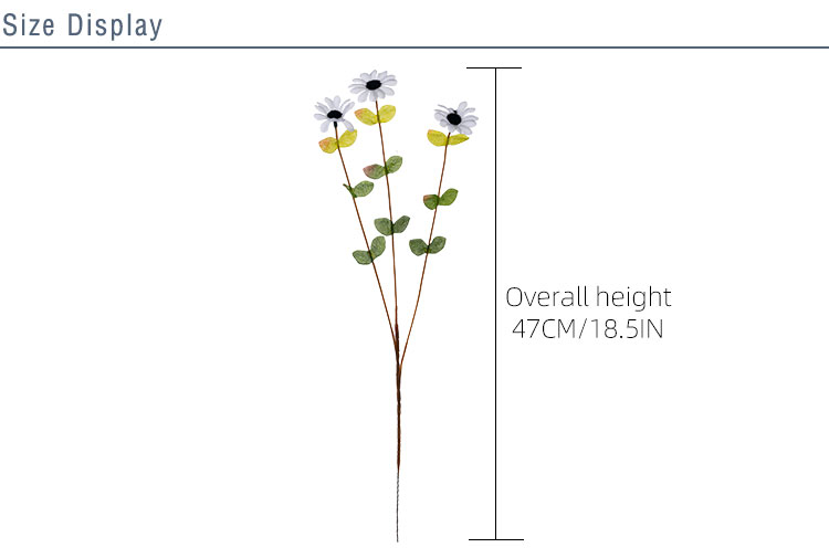 Introducing the YC1107 Small White Daisy Bouquet – a refreshing addition to any space!With its delicate and charming design, this bouquet features three prongs of small white daisies. Made from a combination of fabric, plastic, and wire, these daisies are not only beautiful but also durable.Measuring at an overall height of 47 cm, with flower head diameters ranging from 4cm to 4.5cm, this bouquet is the perfect size to bring a touch of nature indoors. Weighing only 6.1g, it is lightweight and easy to handle.